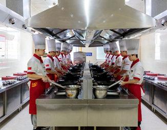 国际标准教学设备+模拟酒店+老师授课+学生一人一灶。只有专业的课堂,才能教育出人才。