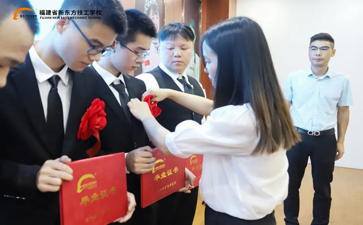 福建新东方也非常荣幸地邀请到了企业一同见证同学们的毕业典礼。接着,企业代表福建省久号餐饮管理有限公司招聘主管黄红梅给予毕业学子们满满的祝福。今天你们即将步入社会,也许不会一帆风顺,但背后永远支持着你们的始终是母校。再次祝各位即将乘风破浪的同学们毕业快乐,前程似锦!